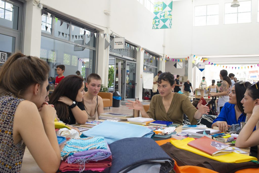 Ένα δημιουργικό εργαστήριο επαναχρησιμοποίησης υφάσματος σε συνεργασία με την καλλιτέχνιδα Camille Romagnani.