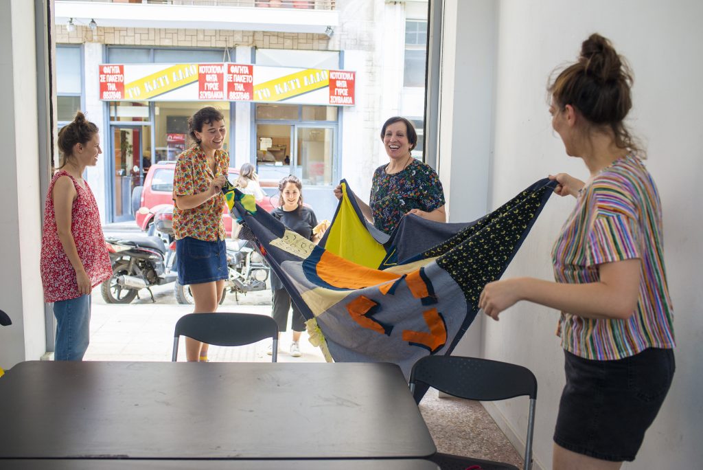 Οι συμμετέχοντες πειραματίζονται μετατρέποντας ρετάλια υφασμάτων σε μια πολύχρωμη σύνθεση. Το αποτέλεσμα είναι η δημιουργία μια σημαίας η οποία συμβολίζει το ταξίδι μας για τη δημιουργία ενός νέους δικτύου. Δουλεύοντας μαζί σε αυτό το κοινό σχέδιο θέλουμε να δημιουργήσουμε μια πραγματική αίσθηση συλλογικότητας και να δώσουμε ιδιαίτερη αξία στο τελικό κομμάτι.